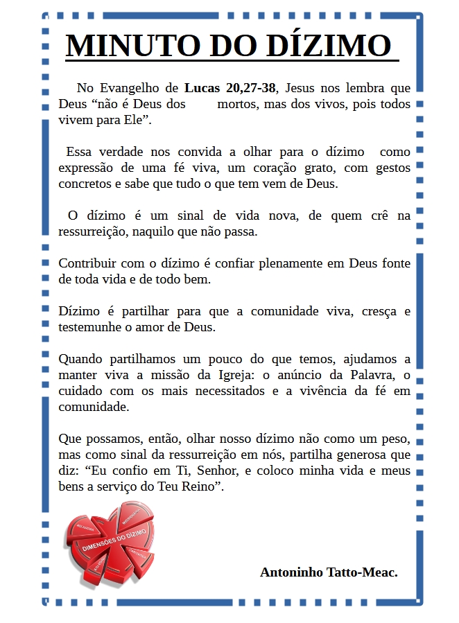 MINUTO DO DÍZIMO – 28/09/2025